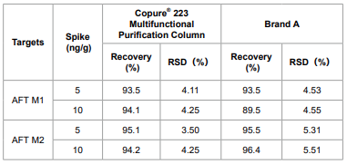 Table 1 Aflatoxin M Group Spike Recovery in Milk
