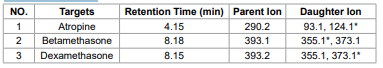 Table 2. Targets, Retention Times and Characteristic Ions(*Quantifier Ion)