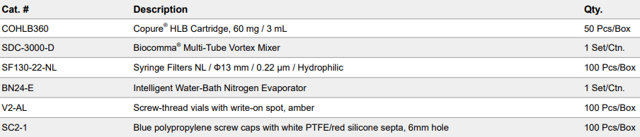 Activation: activate the Copure® HLB Cartridge by 3mLmethanol, then 5 mL of water.