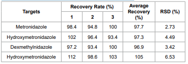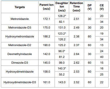 Table 3. Nitroimidazoles in Beef at 2.50 μg/kg