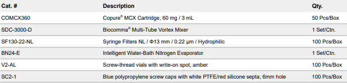 Activation: activate the Copure® MCX Cartridge by 3 mL ofmethanol, then 3 mL of 0.1 mol/L hydrochloric acid.