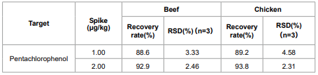 Table 3. Pentachlorophenol Spiking Recovery
