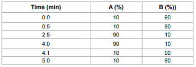 Mobile phase B: acetonitrile (containing 0.3% formic acid)Flow rates: 0.3 mL/min