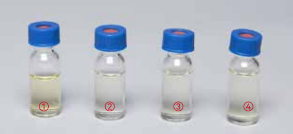 Based on Figure 1, the pigments are obviously absorbedby Copure® 224 Multifunctional Purification Column. Thedecolorization ability is similar to Brand A and B.
