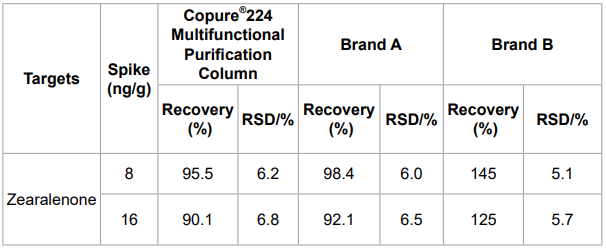 Table 2. Zearalenone Spike Recovery in Corn Flour